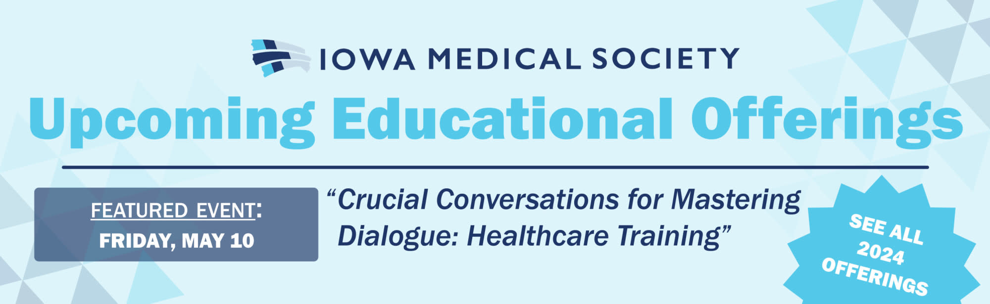 During this May mental health month and every month, physician wellness is a top priority for the Iowa Medical Society! Join us and the Iowa Board of Medicine on Tuesday, May 21 to learn more about their Iowa Physician Health Program, who it is for, and how it can help Iowa physicians.
